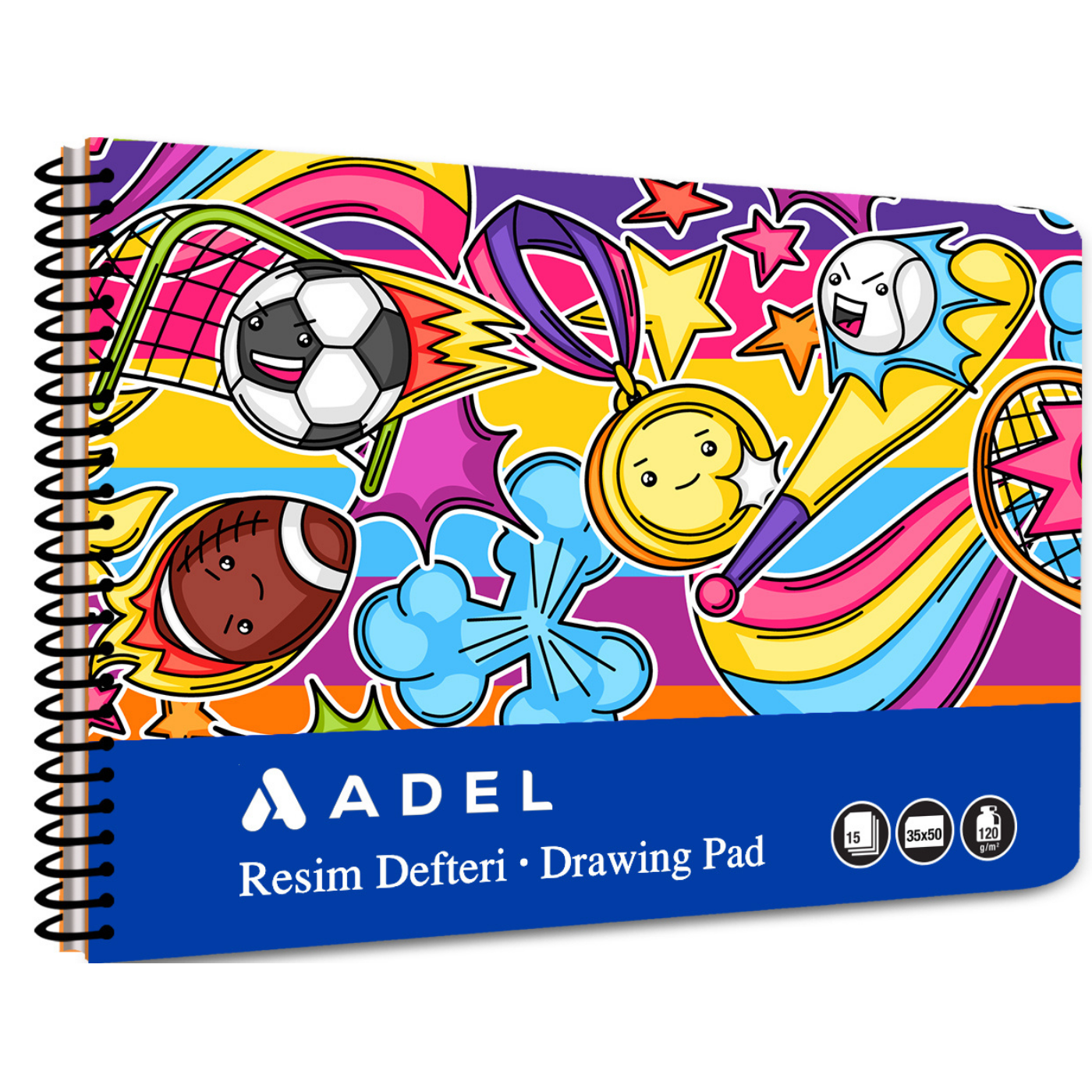 Adel Fun Karton Kapak Resim Defteri , hem okul kullanımı hem de hobi amaçlı geniş ölçekli çizimler için tasarlanmış,perforajlı sayfaları sayesinde kolay kullanım sunan bir resim defteridir.