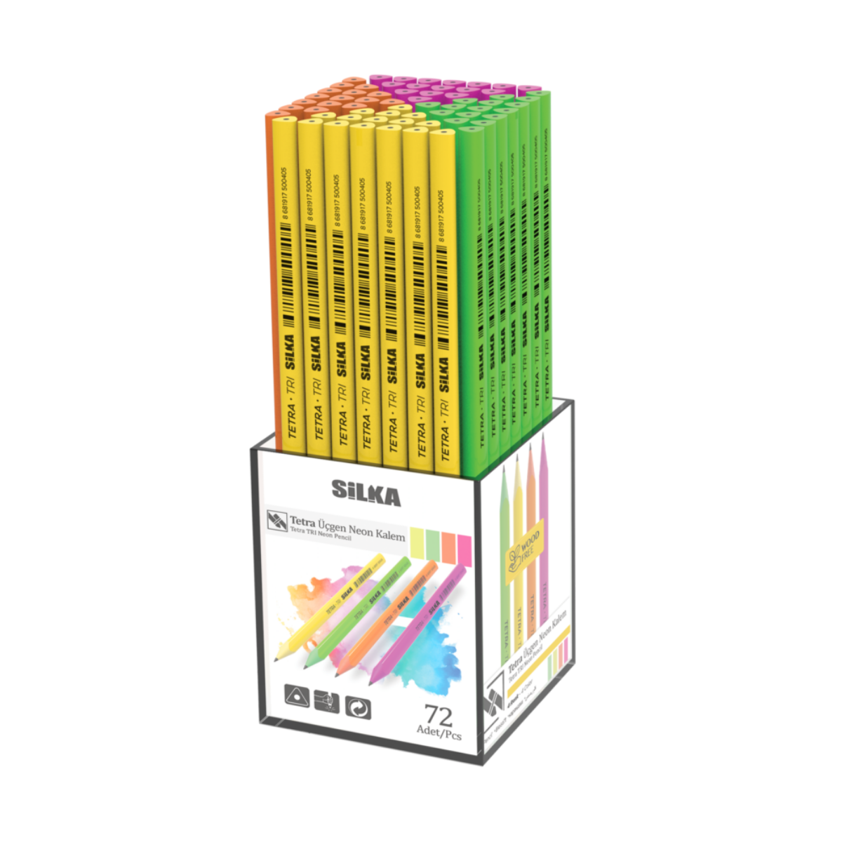 Çalışma masanızda neon ışığı parlasın! Silka Tri Shiny Neon serisi, hem göz alıcı neon renkleri hem de metalik parıltısıyla tarzınızı yansıtırken, özel üçgen tasarımıyla en konforlu yazım deneyimini sunar.