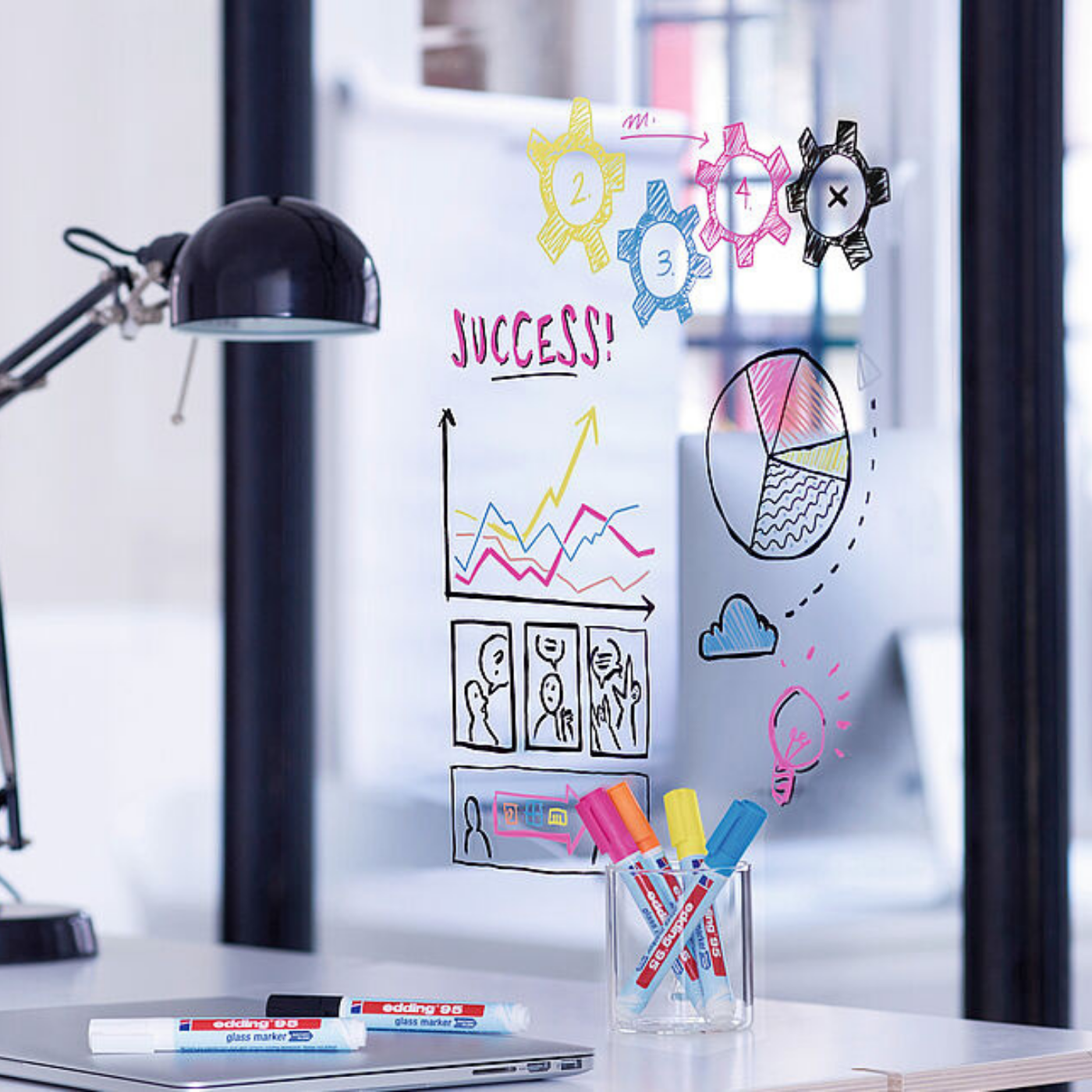 - Çoğu cam yüzey ve cam yazı tahtaları üzerine yazı ve işaretleme için cam kalemi.