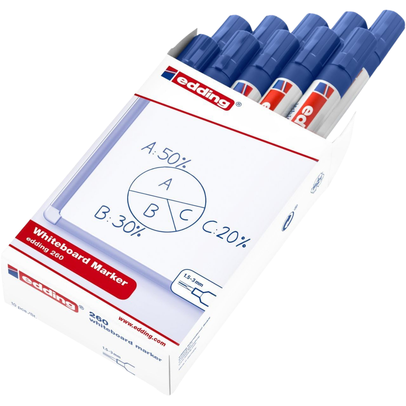 Dinamik sunumlar için yüksek kontrast; Edding 260'ın akıcı mürekkebi ile beyaz tahtalarınızda kesintisiz bir "data flow" yaratın.