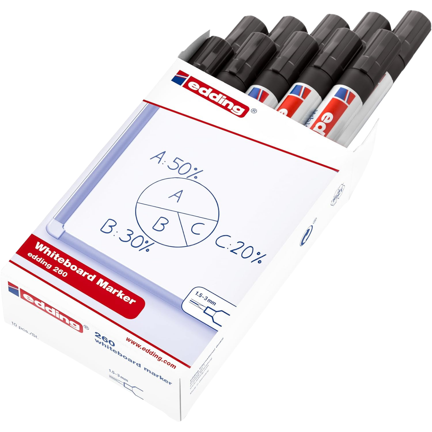 Dinamik sunumlar için yüksek kontrast; Edding 260'ın akıcı mürekkebi ile beyaz tahtalarınızda kesintisiz bir "data flow" yaratın.