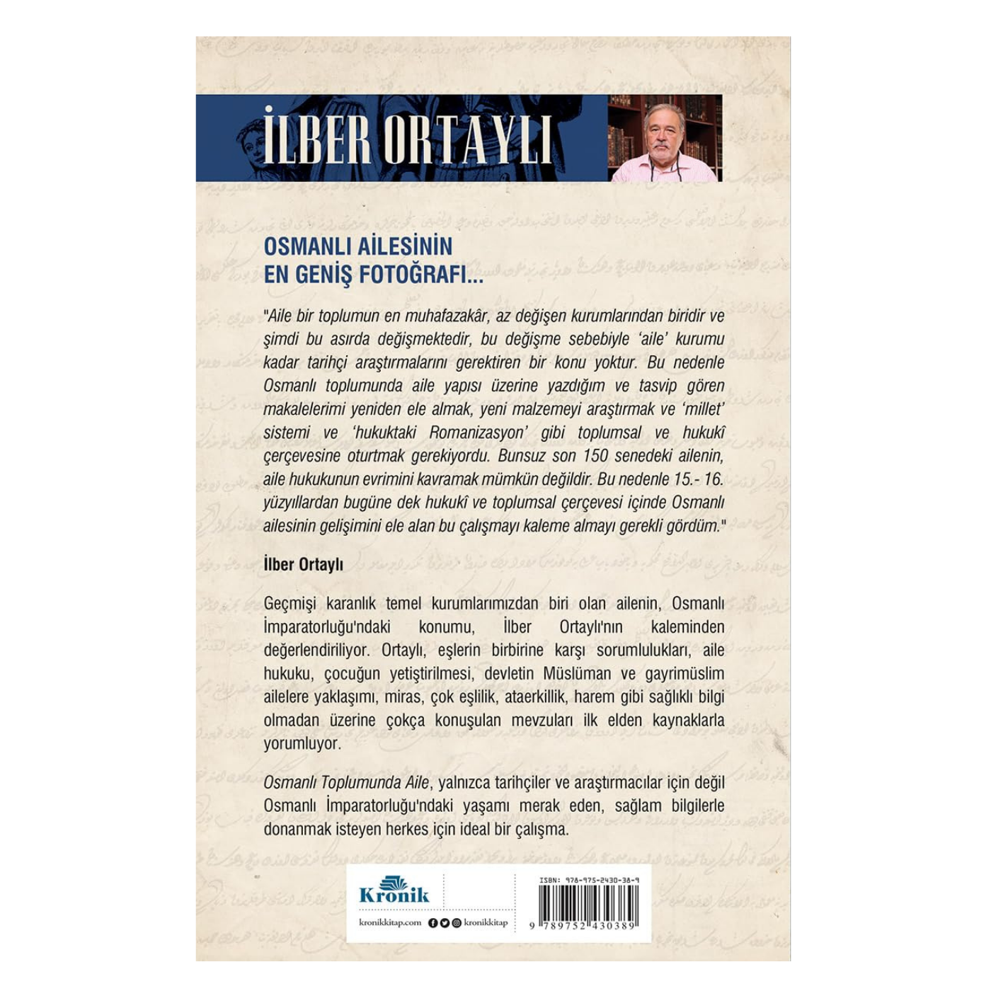 Toplumun en muhafazakâr ve az değişen kurumlarından biri olan aile, modern çağla birlikte büyük bir dönüşüm geçirmektedir. Dünyaca ünlü tarihçimiz İlber Ortaylı, bu eserinde 15. ve 16. yüzyıllardan günümüze kadar Osmanlı ailesinin hukukî ve toplumsal gelişimini titizlikle ele alıyor. Aile hukukunun evrimini, "millet" sistemi ve hukuksal çerçeve üzerinden yeniden yorumluyor.