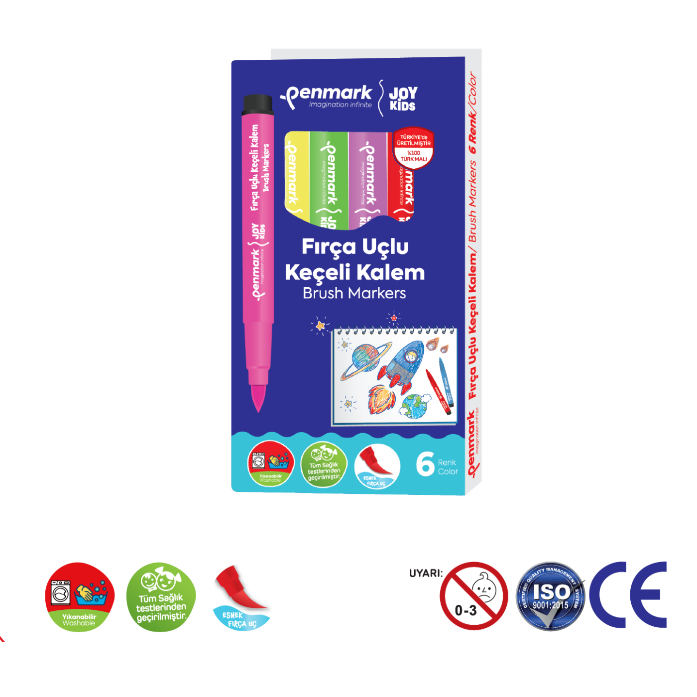 Süper Yıkanabilir Fırça Uçlu Keçeli 6'lı HS 708-6