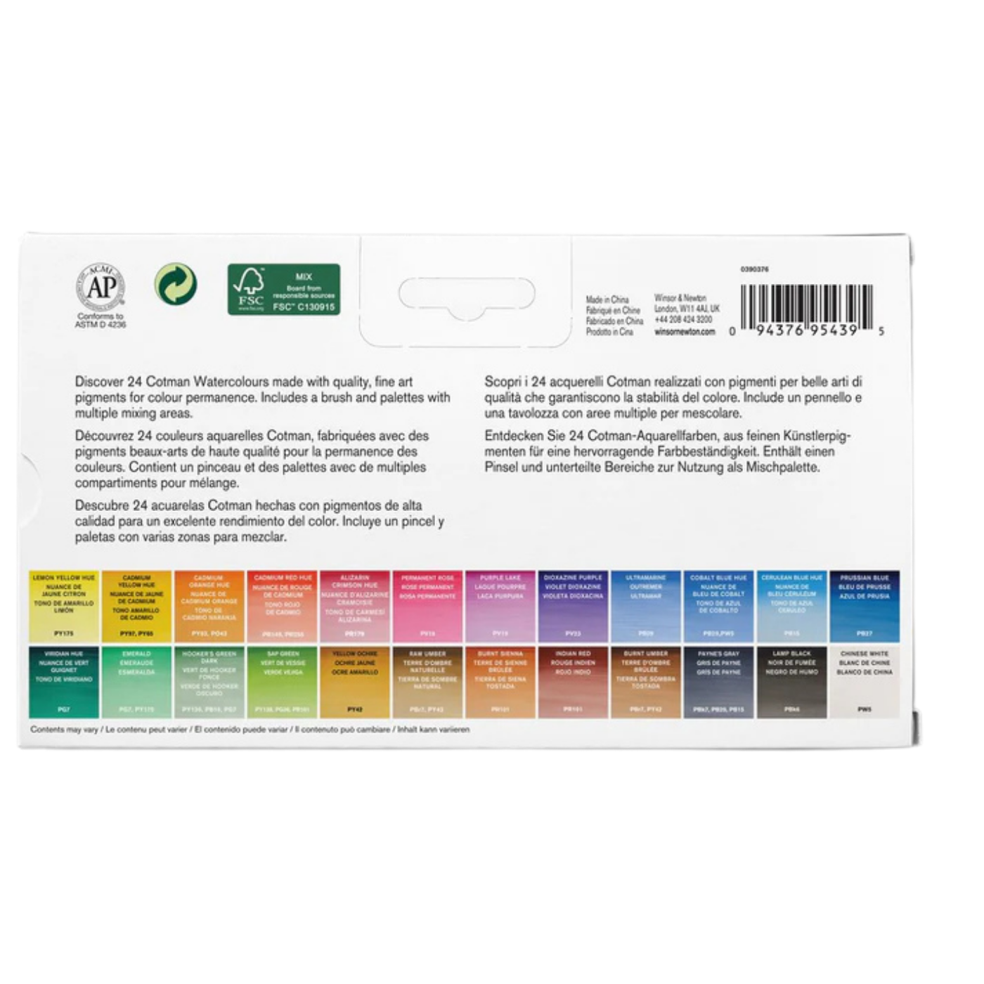 Winsor Newton Cotman Wc H/Plus 24'lü Tablet Sulu Boya Seti 390376 Hangi renkleri içerir?